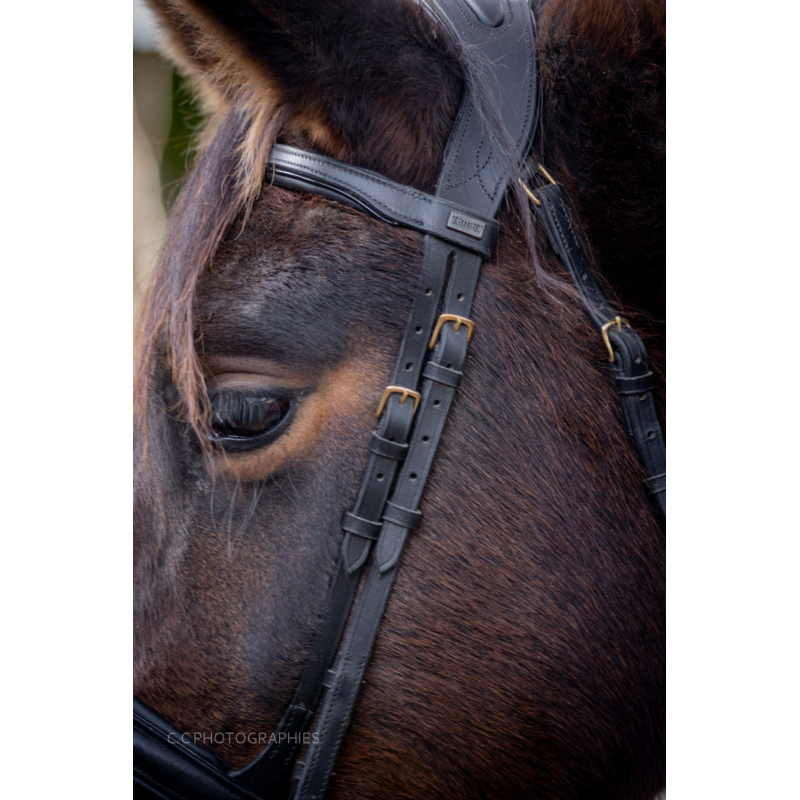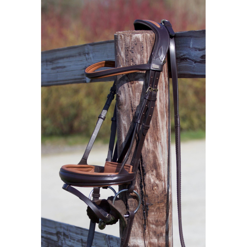 Têtière, frontal et muserolle doublés d'un pad softy matelassé, pour accroître le confort du cheval.