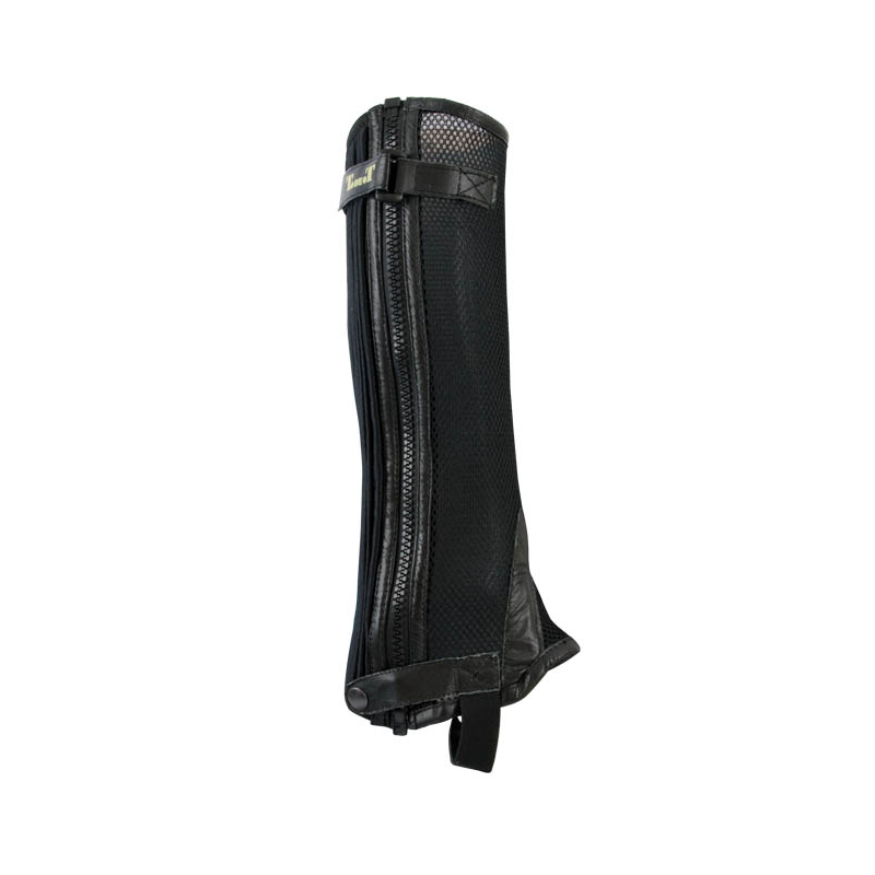 Mini-chaps en maille 3D respirante et ultra souple. Toute la partie intérieure de la jambe est en cuir pour un meilleur contact avec le cheval et un meilleur grip avec la selle.