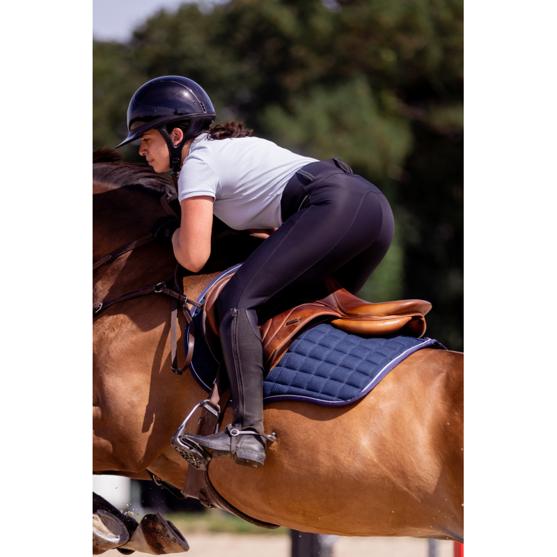 Matelassage en mousse pour un tapis de selle léger, amortissant et respirant. Ce tapis sèche en quelques minutes après utilisation.