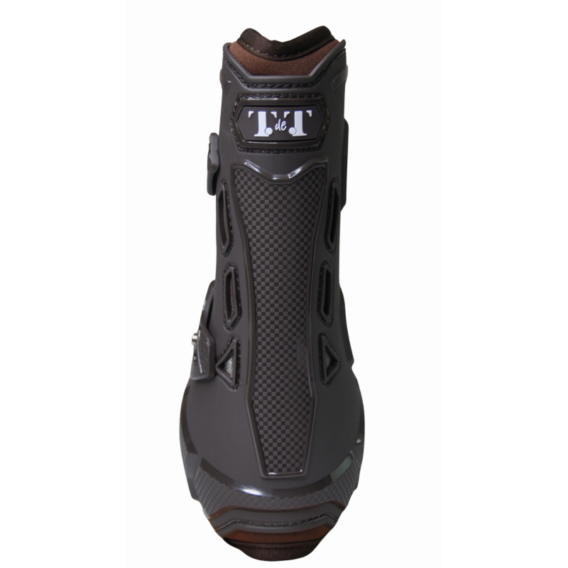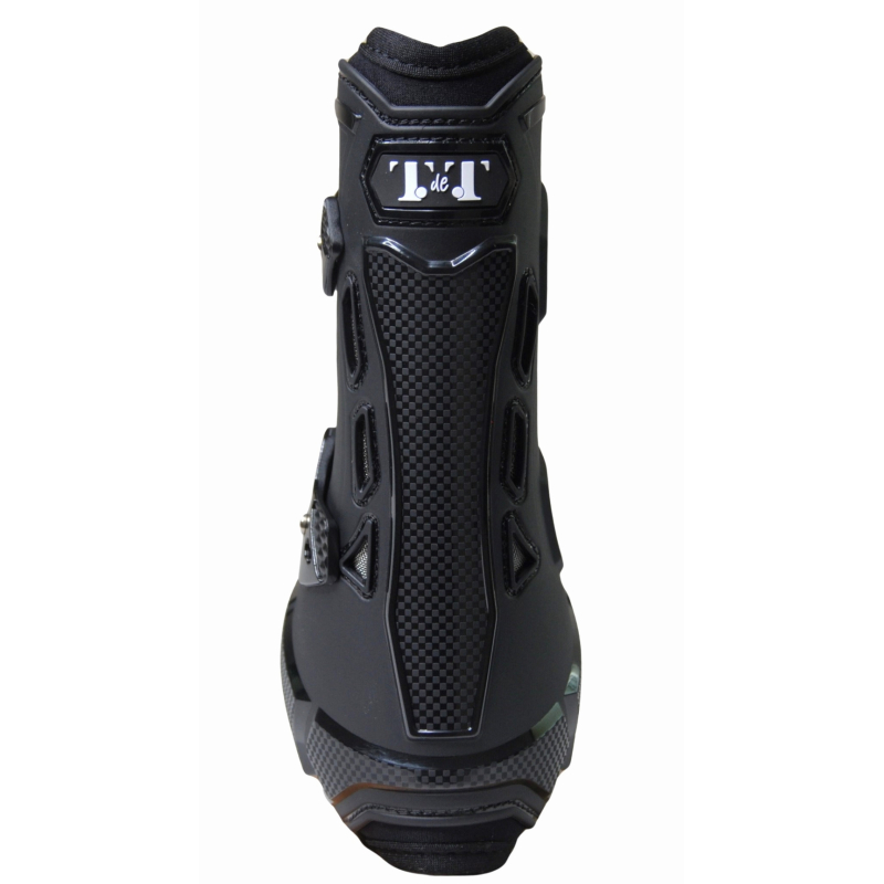 The perforated jersey/neoprene lining coupled with coupled with nozzles on the hull allow for optimum air circulation and consequently good aeration of the tendons during exercise.